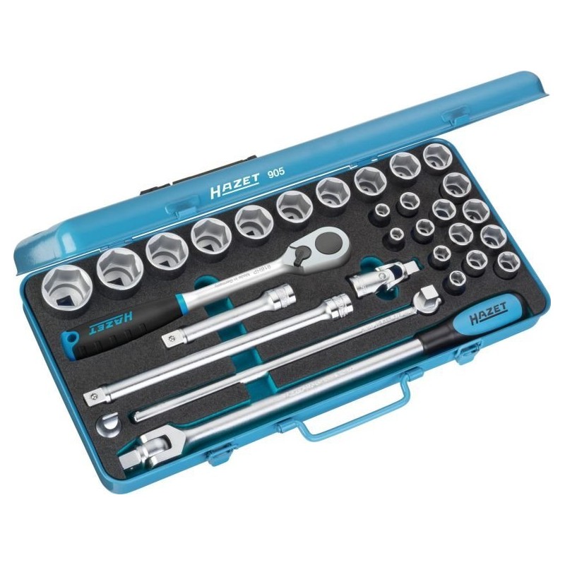 Zestaw narzędzi Hazet Hazet socket wrench set 905, 1/2, 30 pieces, tool set (blue, with reversible ratchet)