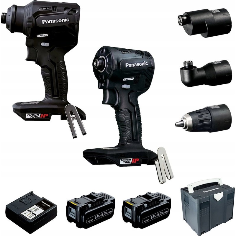 Zestaw narzędzi Panasonic Zestaw Panasonic: wkrętarka EY1DD2, zakrętarka udarowa EY1PD1, 2x Akumulator 18V/5,0 Ah, ładowarka, s