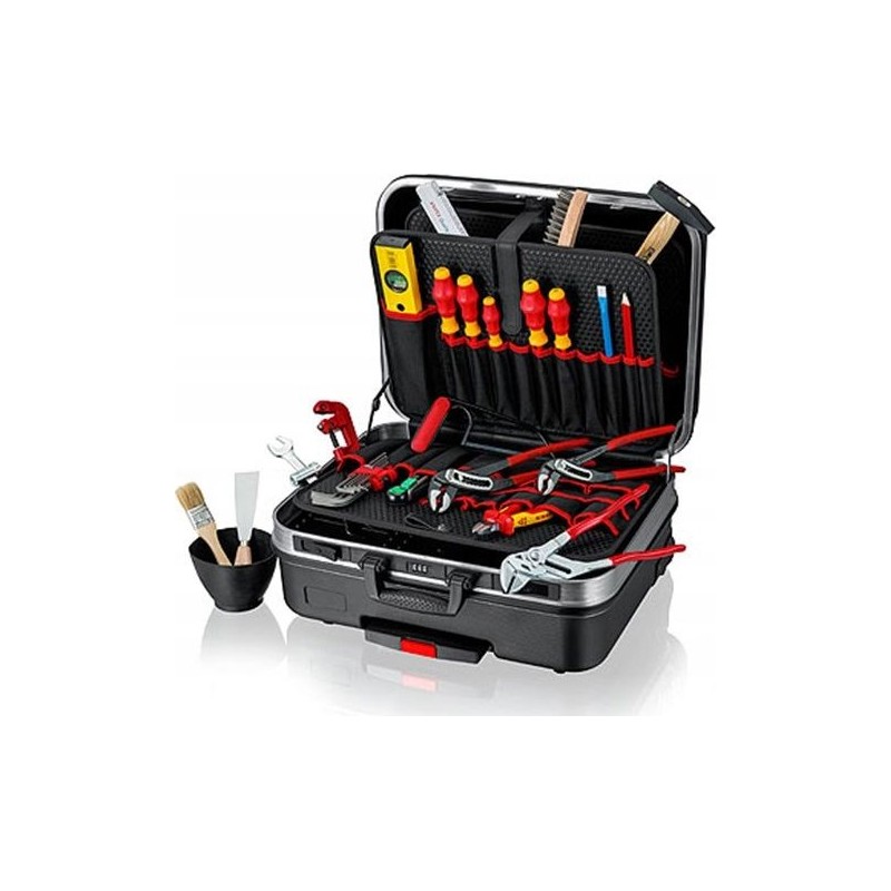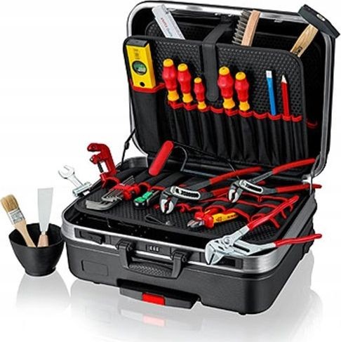 Wyposażone w cztery narzędzia KNIPEX, łącznie 31 markowe narzędzia, częściowo przetestowane przez VDE zgodnie z normą DIN EN 60900